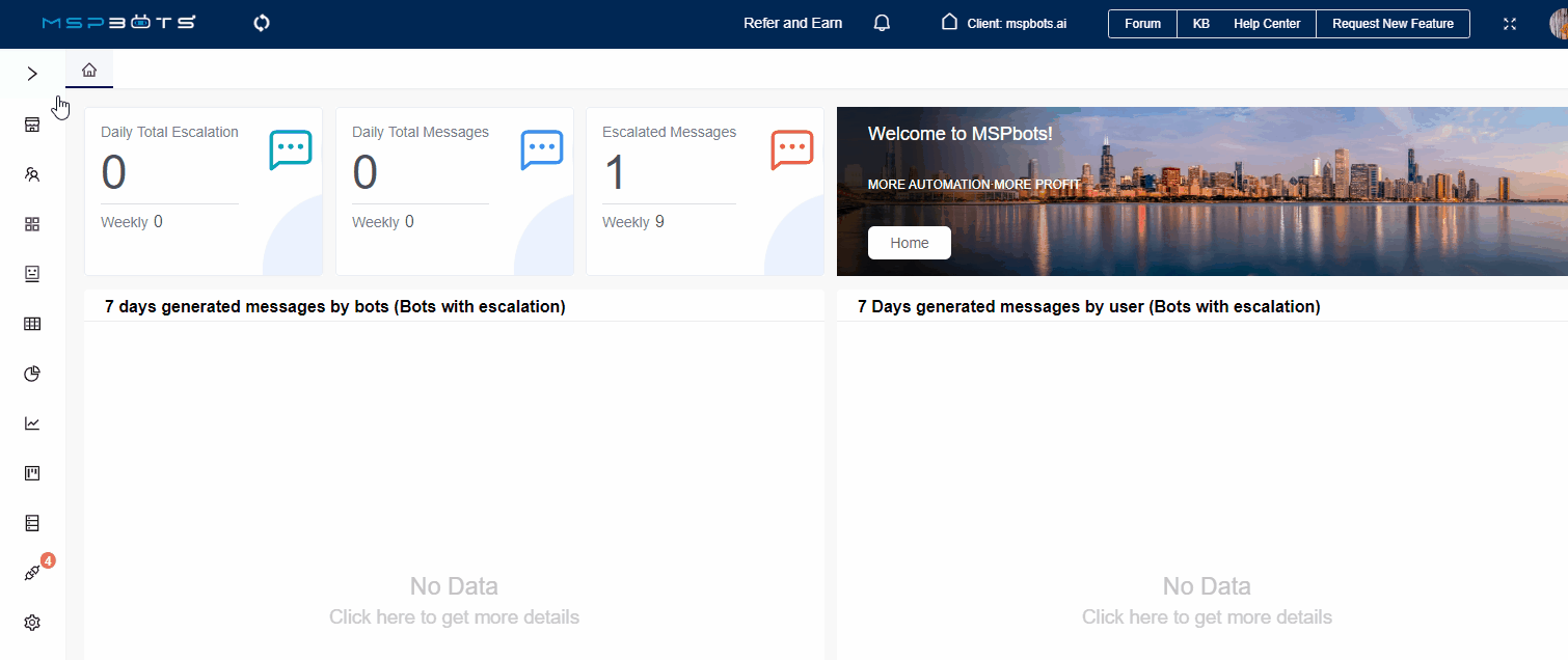- Navigate to Widgets on the MSPbots app menu.
