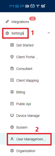 - Go to Settings on the MSPbots navigation bar, and click on User Management.