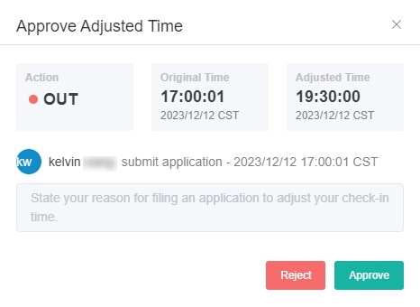 - Next, check the details of the request and click Approve if the request is approved. Otherwise, click Reject.