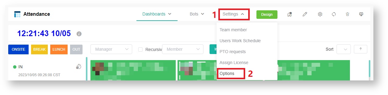 - Hover over Dashboards on the right side of the screen and select Attendance Record from the drop-down list.