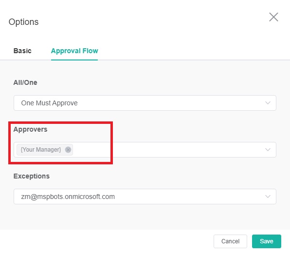 - If the Approvers field is empty, the person listed under the Exceptions option acts as your approver.