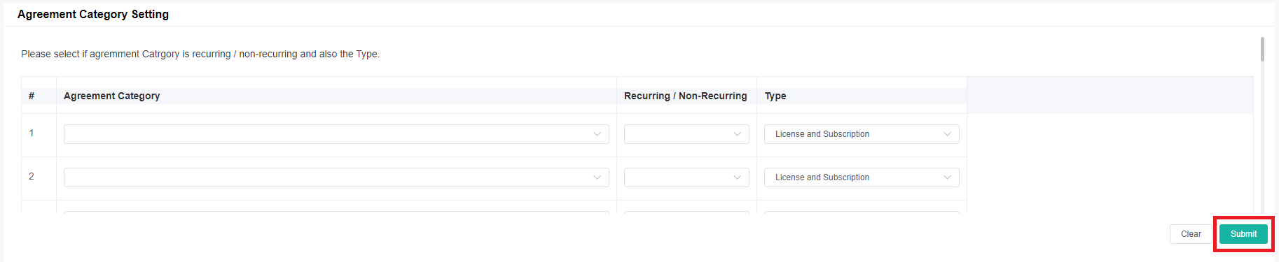 Adjusting the Agreement Category Settings
