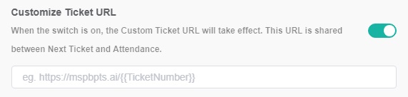 * If you enable the "Customize Ticket URL" switch in the Attendance Manager or NextTicket Manager, the switch for this feature in the remaining apps will also be ON. If you turn off the switch in any of these apps, the switch for this feature in the remaining apps will also be OFF.