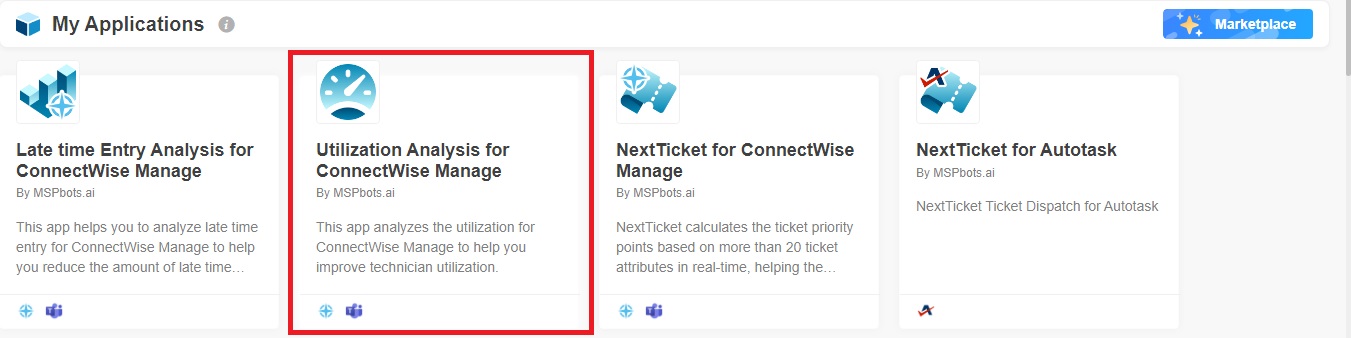 - When the My Application screen opens, click Utilization Analysis for ConnectWise Manage.