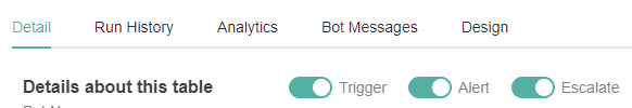 The Trigger is one of the toggle switches for bots that are found in the Detail tab. Switching the Trigger ON makes the bot available and running.