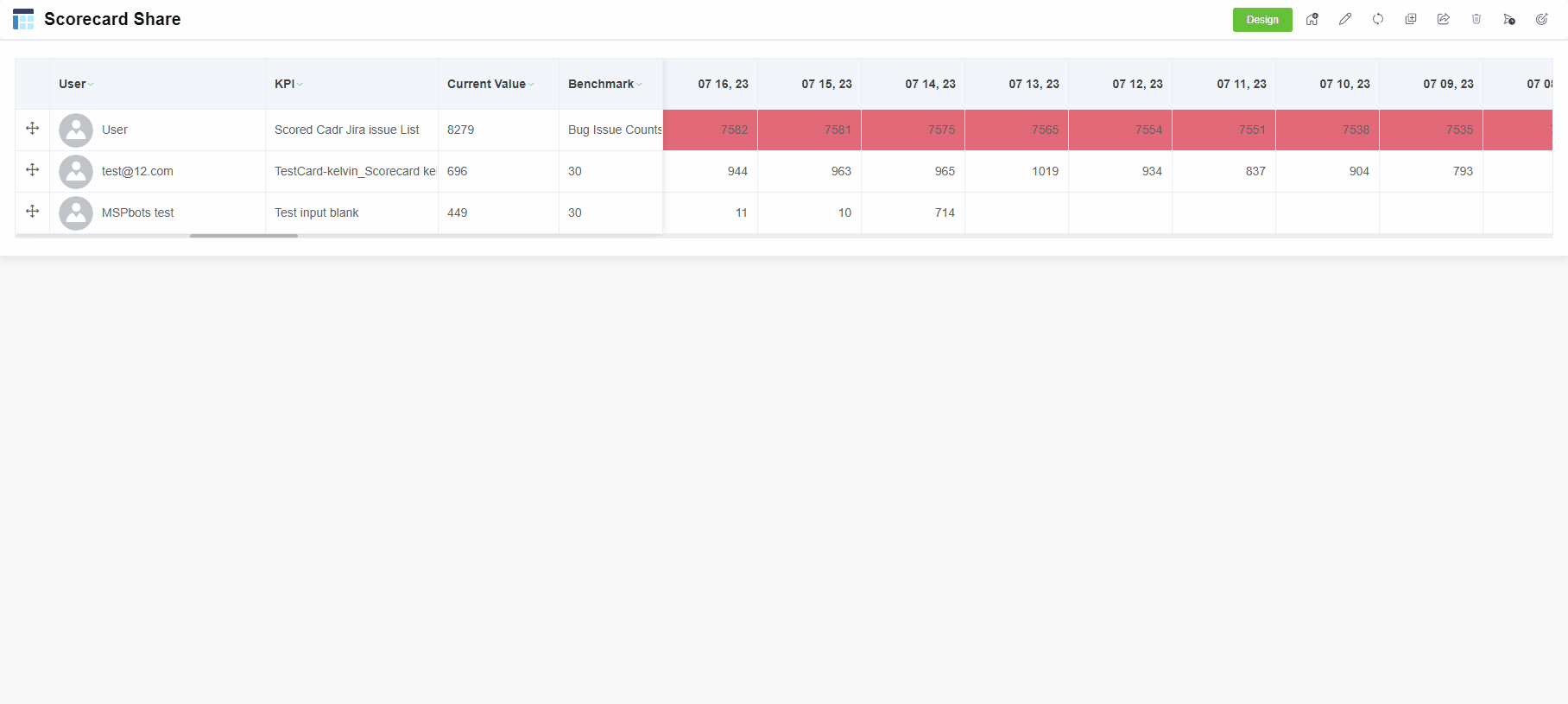 Click the Share icon to share the scorecard dashboard.
