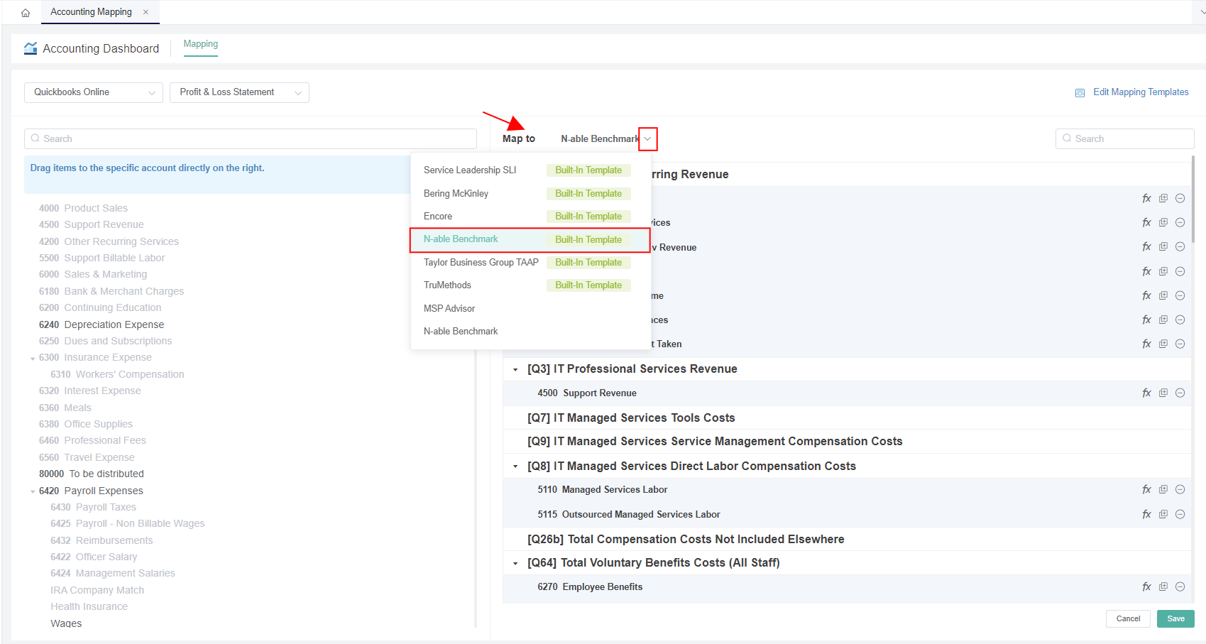 - Go to the Map to section and select N-able Benchmark from the templates.