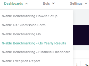 - Go to Dashboards and click N-able Benchmark - Qs Yearly Results.