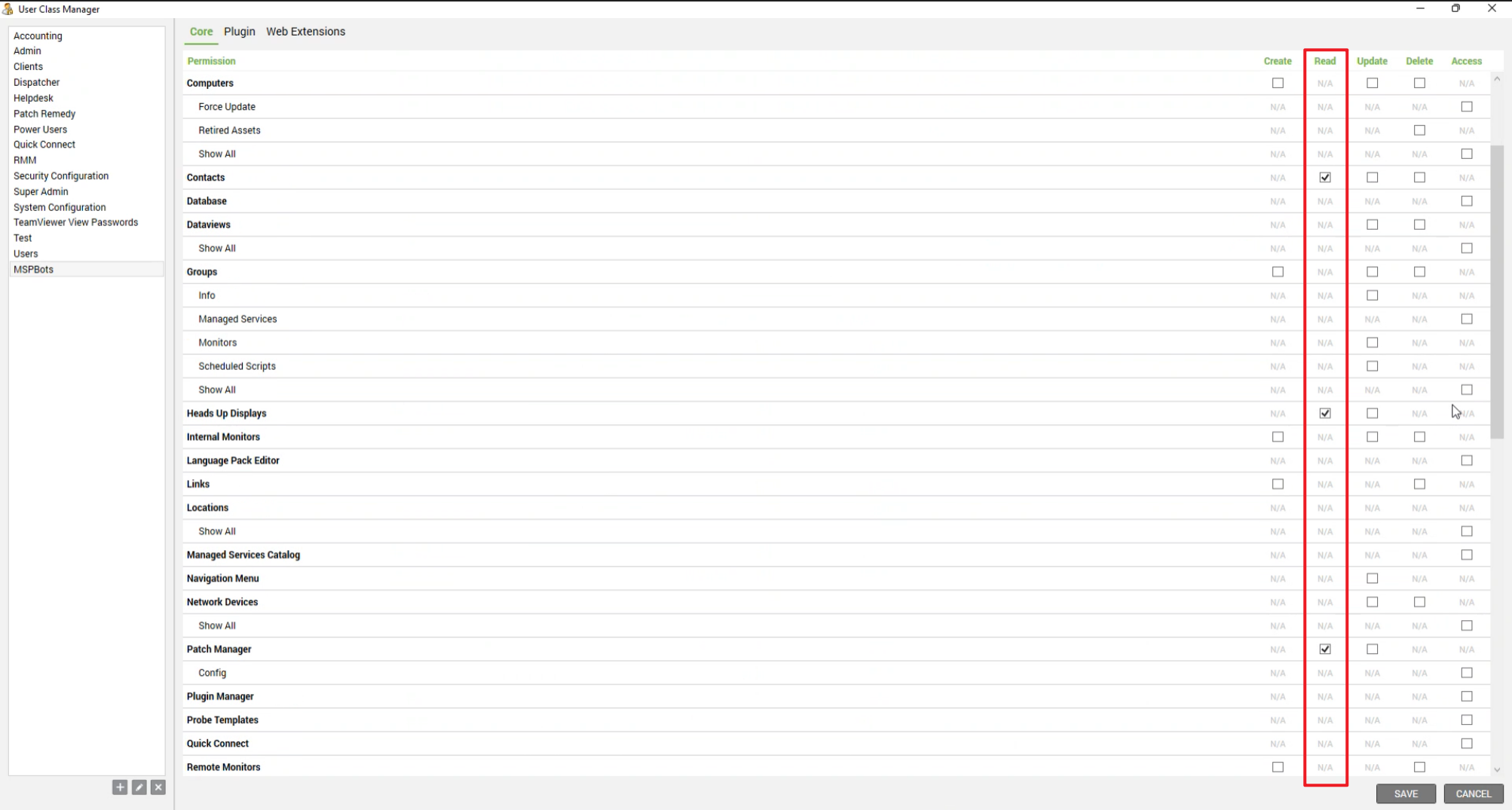 - Create a new user class: "MSPbots".