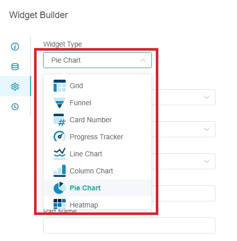 In New Widget Builder mode, you can switch widget types by clicking the icon of your desired widget type. Remember to click Save to keep your settings.