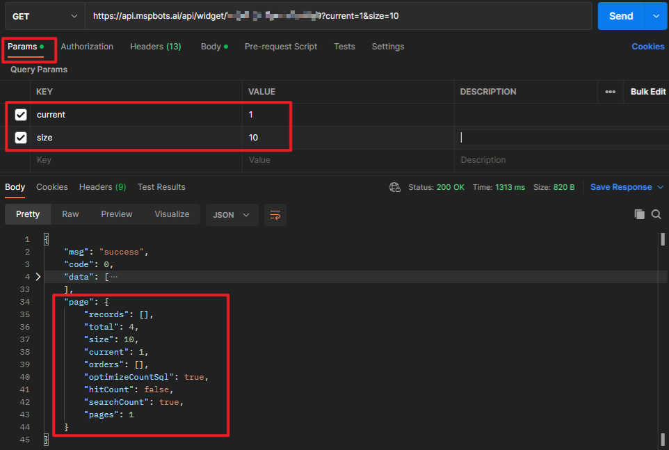 https://api.mspbots.ai/api/widget/{resourceId}?current=1&size=10&Real Name=n&Update Date=2021-10-10,2023-03-30,2023-04-05&Id=,1534956341424005122