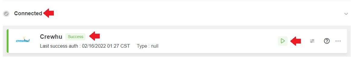 Check for the Connected and Success statuses. You should also see a green triangle which means that the connection is running.
