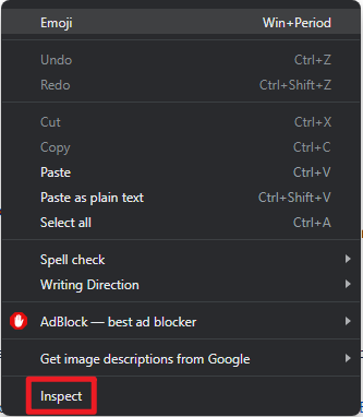 - Right-click the blank area of the browser windows, and choose Inspect.