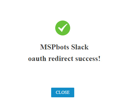 - A redirect success window opens and shows that MSPbots has successfully connected to the MSPbots Slack workspace.