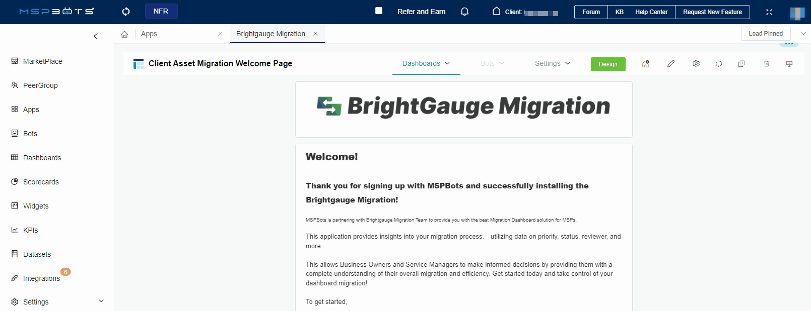 - Install the BrightGauge Migration app from our marketplace within your MSPbots account