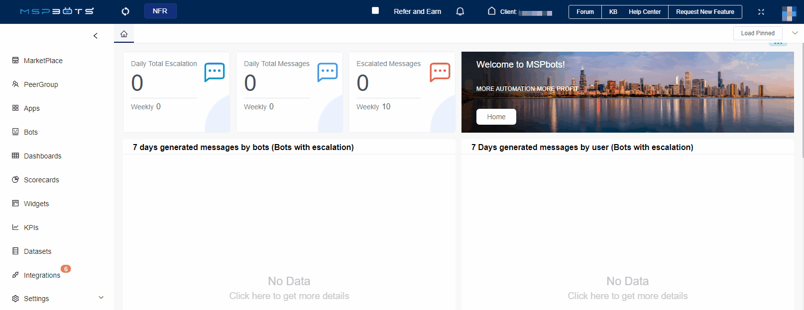 - Log in to the MSPbots app using the admin role.